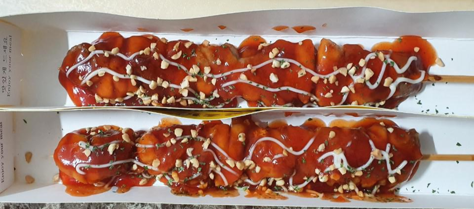 두번째는 양념치킨 맛 닭꼬치입니다. 여러분들도 양념치킨은 다들 잘 드시죠. 가장 무난하게 먹을 수 있는 메뉴중 하나가 아닐까 합니다.