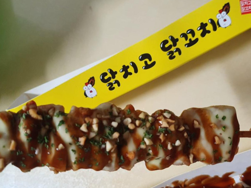 첫번째는 치즈맛 닭꼬치입니다. 치즈를 뿌리고 위에 니끼함을 잡아주기위해 데리야끼 소스를 좀 발랐더라구요