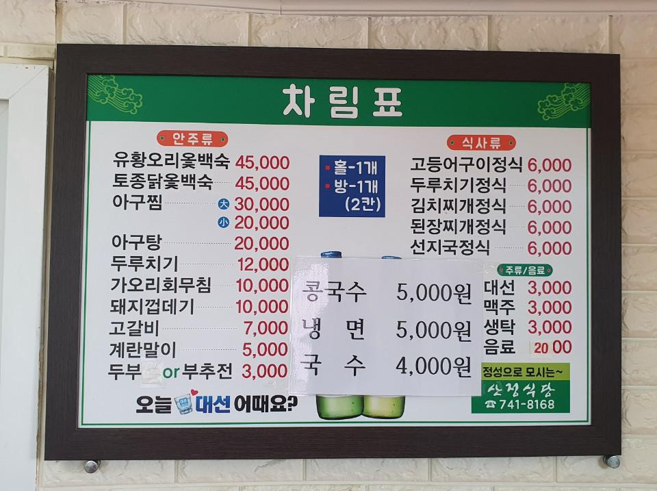 산정식당은 장산을 올라가는 길에 있는 동네식당입니다. 산을 찾는 분들이 즐겨 찾는 곳이죠