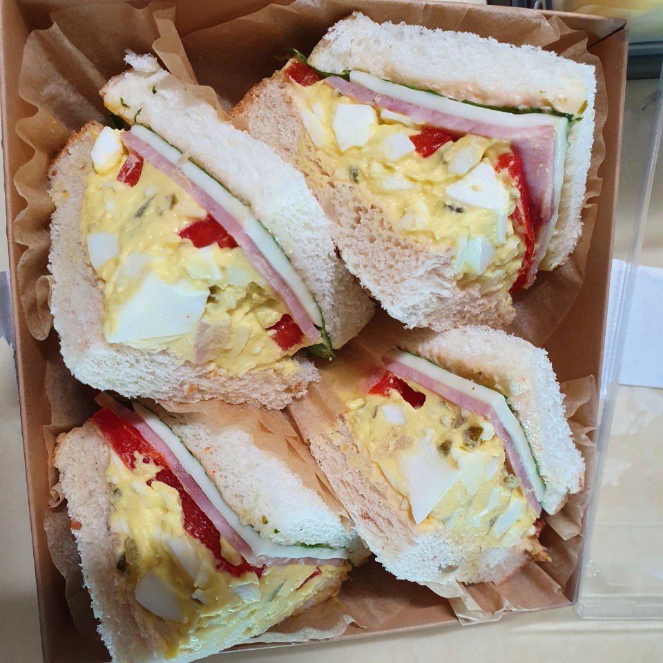 햄치즈& 에그샐러드 샌드위치입니다.