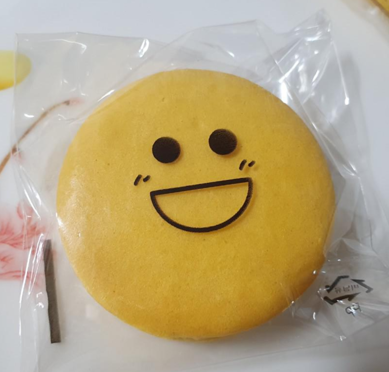 레몬크림이 가득 들어간 시트러스한 레몬 마카롱이라고합니다. 총중량은 18g에 칼로리는 45kcal입니다. 가격은1600원, 방긋웃는 그림을 넣어 더 친근하게 느껴집니다.