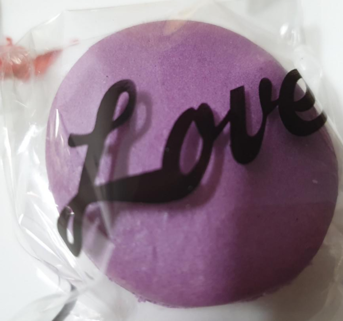 상큼한 블루베리 쨈이 가득한 블루베리 마카롱입니다. 총중량은 17g에 칼로리는 60kcal 가격은 1600원입니다.