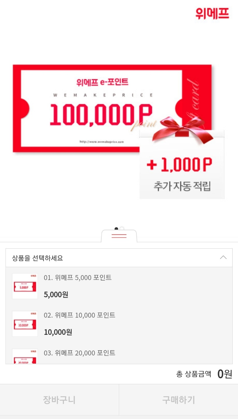 2. 위메프에 미리 로그인해두시고, 위메프에서 포인트를 충전해 두세요. 신용카드로 결제하려고 하다 보면 느려서 계속 튕기더라구요. 하지만 미리 포인트를 충전해 둔다면 바로 결제가 가능해요!