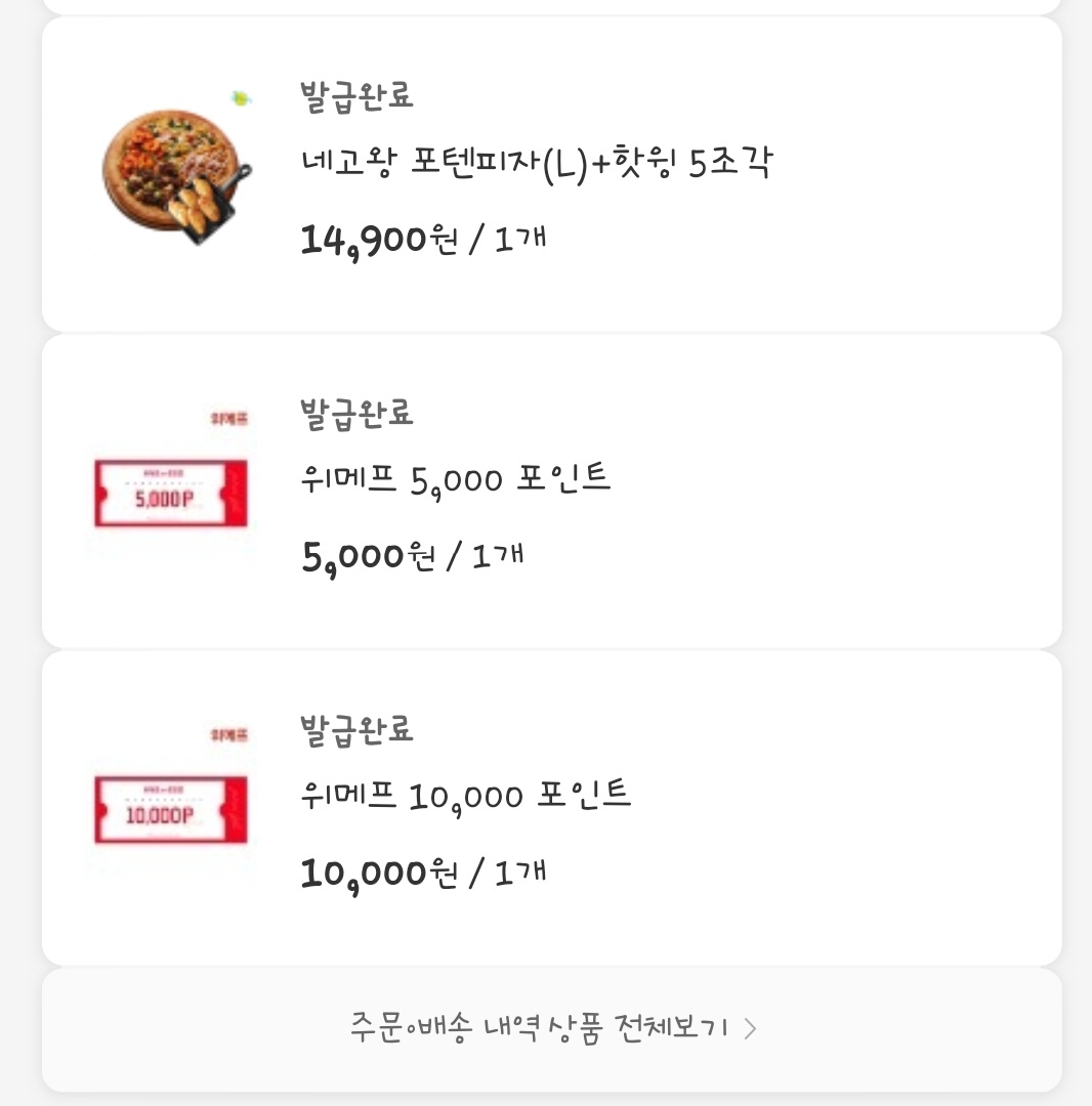 사실 그 이전은 네고왕 포텐피자를 반올림피자샵 공식 홈페이지에서 구매할 수 있었는데 에러가 자꾸 떠서 위메프에서 판매로 바꾸었다고 해요 ㅎㅎ 사실 저희도 공동홈페이지에서 자꾸 사려다 실패해서 포기하다시피했는데요, 마지막으로 주문했는데 이번에 위메프에서 성공해서 구매했답니다!