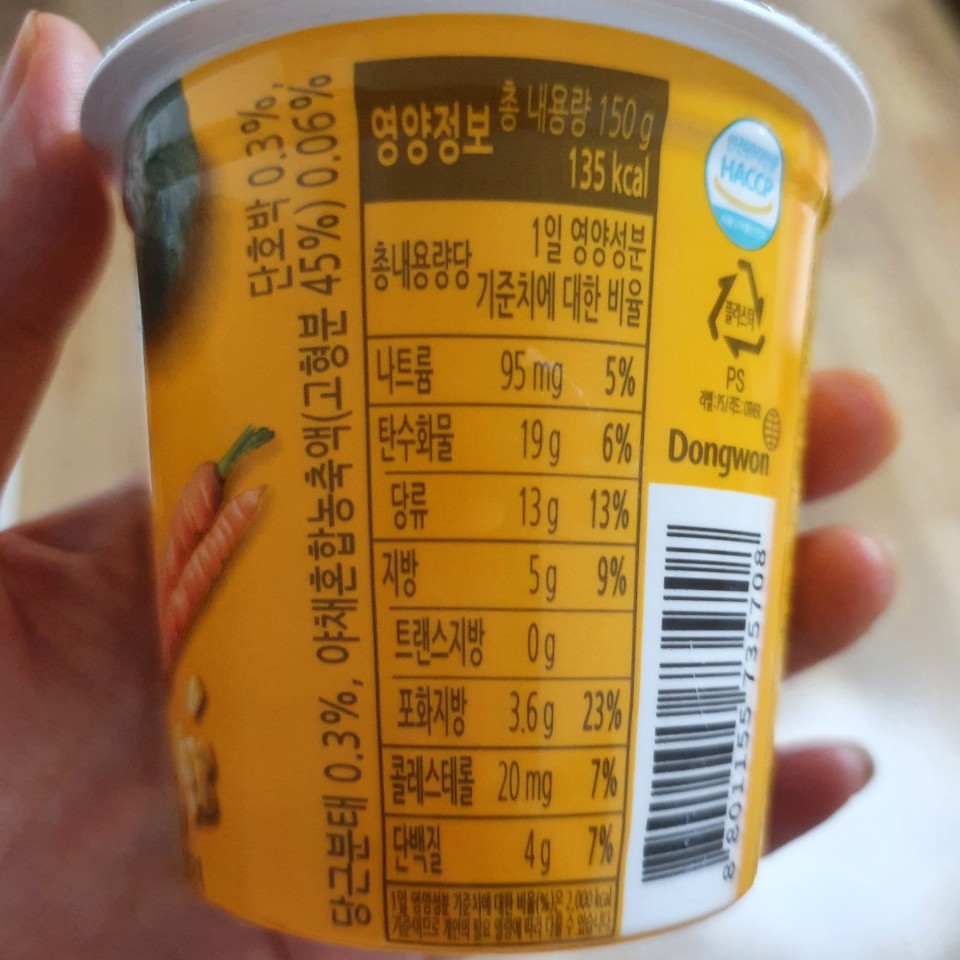 덴마크 요거셀러드 옐로우는 총용량이 150g에 칼로리는 135kcal입니다. 칼로리가 높지도 않고 건강식이라 더 좋은 것 같아요.