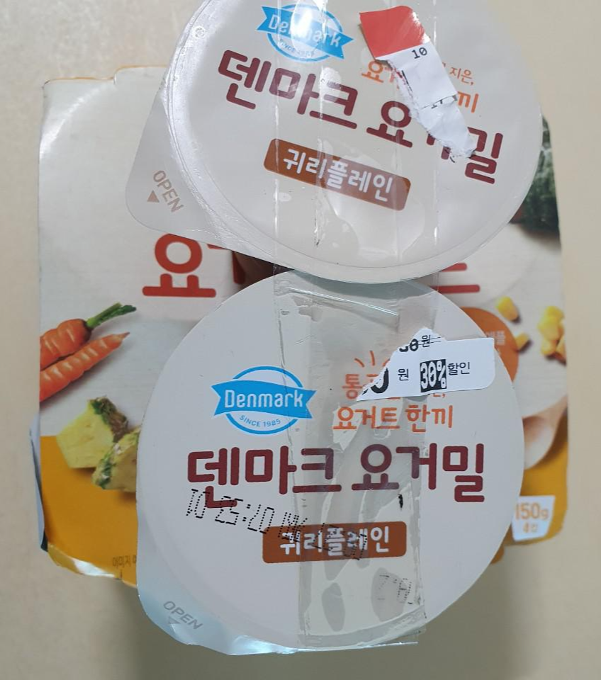 그러니 이런 할인템들이 좋더라구요. 가격은 4개입에 5980원입니다. 전 30% 할인된 가격 4180원에 구매헸습니다. 거기다 덴마크 요거밀 귀리 플레인 2개도 붙여져있다니 더 이득아니겠어요.