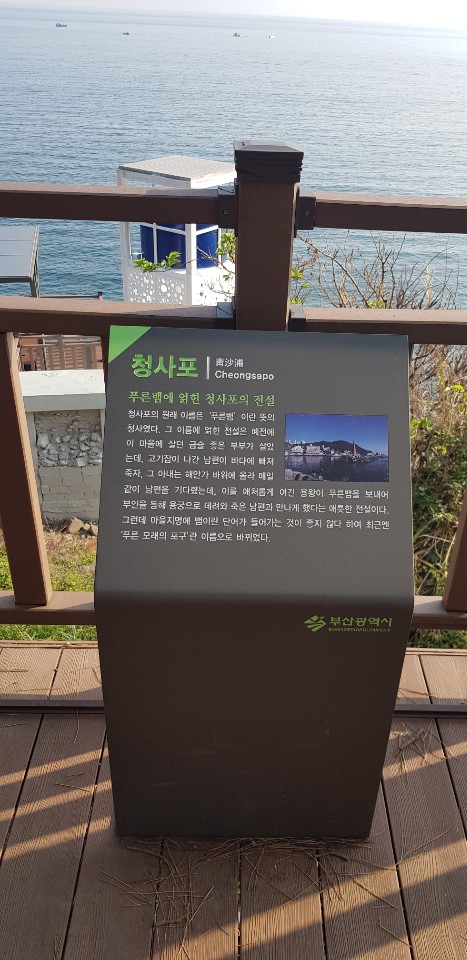 다릿돌 정거장입니다. 이곳은 청사포 다릿돌 전망대가 있는 곳입니다. 이곳은 청사포마을의 수호신으로