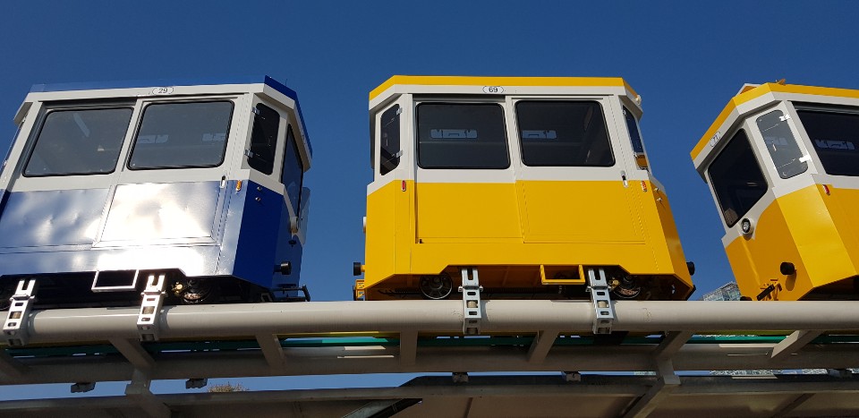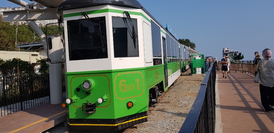 아직은 완공되지 않은 기찻길을 걷다보니 귀엽게 생긴 해변기차가 지나갑니다. 해변 열차는 국내 최초로 도입된 배터리 충전 방식의 친환경 열차라고 합니다
