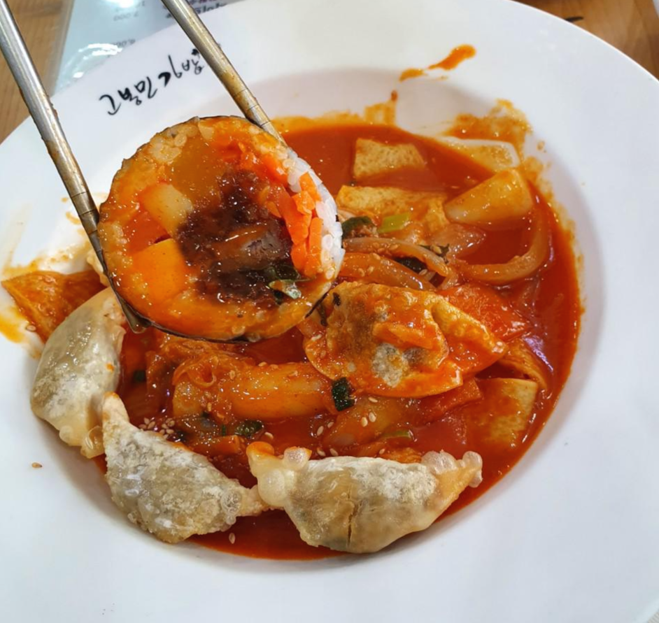 만두를 떡볶이 국물에 적셔먹으니 만두의 바삭함과 떡볶이가 어우러져 정말 맛있었어요.