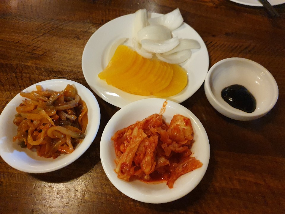기본반찬들이 나왔습니다. 중국집에서 김치까지 나오다니 한국인의 입맛에 맞추긴 한 모양이네요.