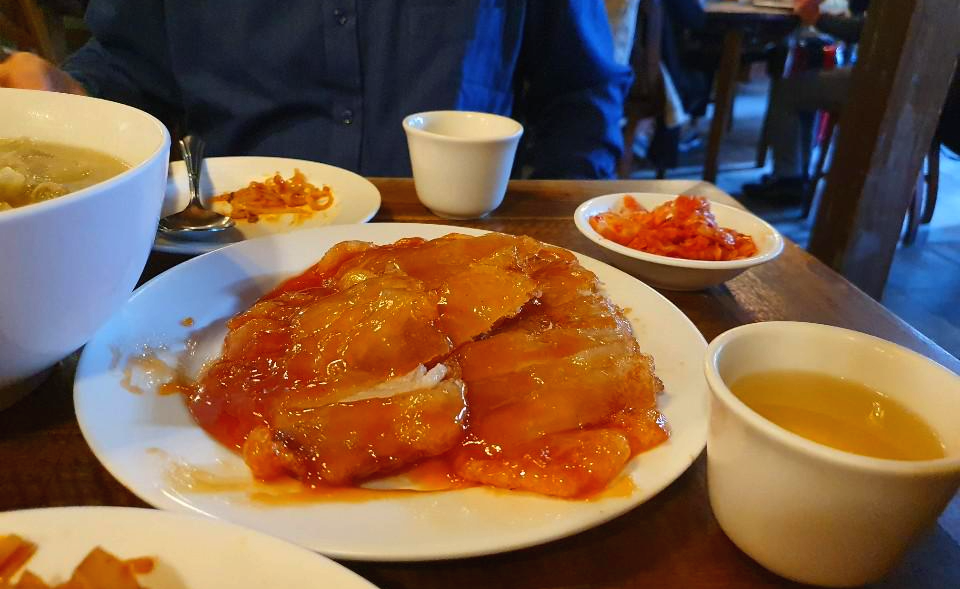 동북음식의 하나인 꿔바로우는 탕수육과 비슷하기는 하지만 탕수육과 다른 점이 있다면 탕수육보다 얇고 넓은 고기를 바싹 튀겨낸 음식인데 적당히 바삭하면서 쫀득쫀득 씹는 식감도 좋고 지인 말처럼 정말 맛있어요.