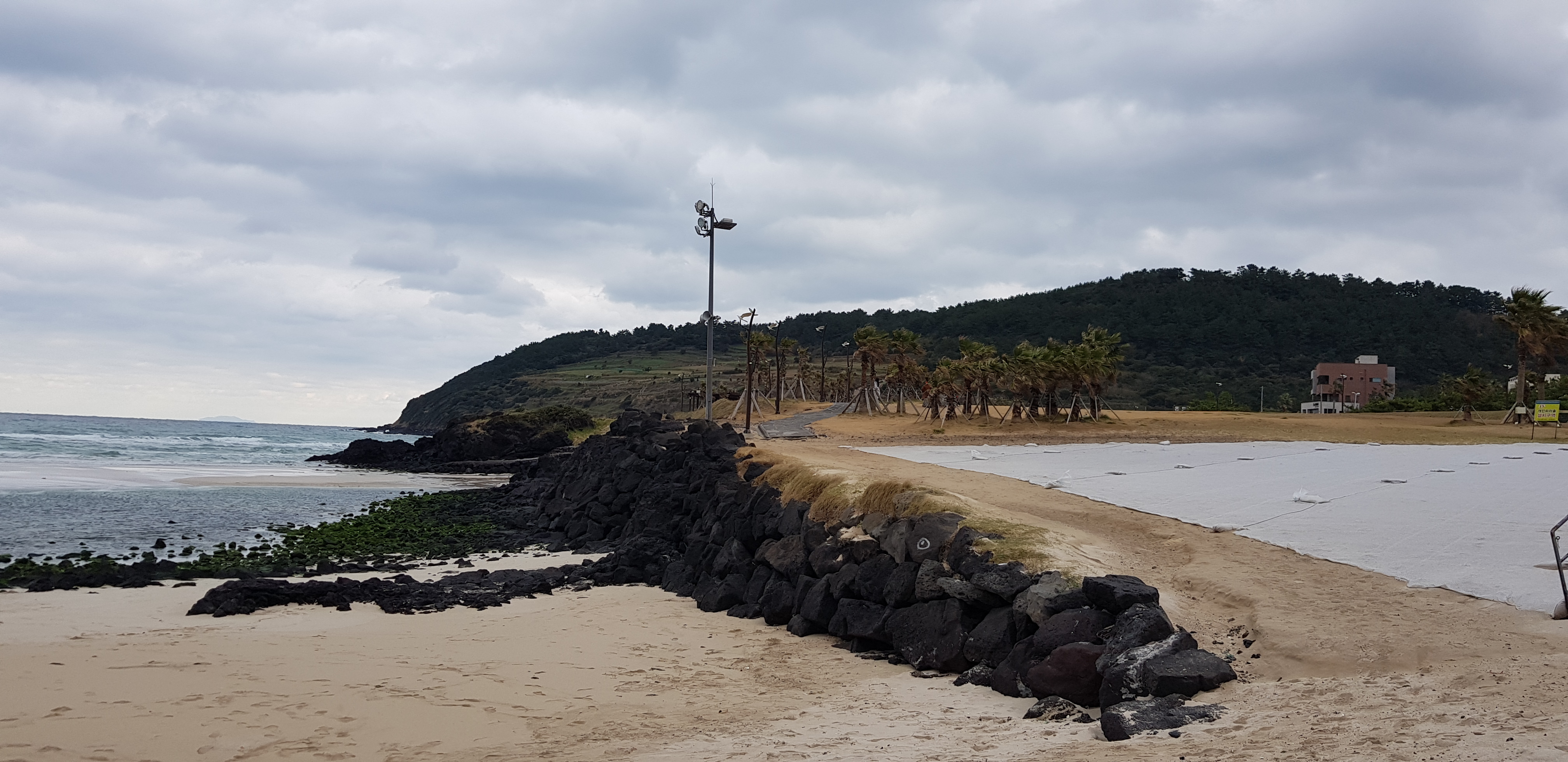 함덕 해수욕장은 아담하지만 수심이 얕고 물이 맑아서 많은 관광객들이 즐겨 찾는 곳인데요, 경사가 완만하고 백사장의 모래가 고와 여름이면 가족단위로 많이 찾는다고 해요. 해변 주변에는 예쁜 산책로가 조성되어 있어 한바퀴 둘러보는데 겨울이라 그런지 바람이 너무 불어 많이 추웠어요. 가을이었으면 주위의 풍경을 바라보며 걷기에 좋았을 것같아요.