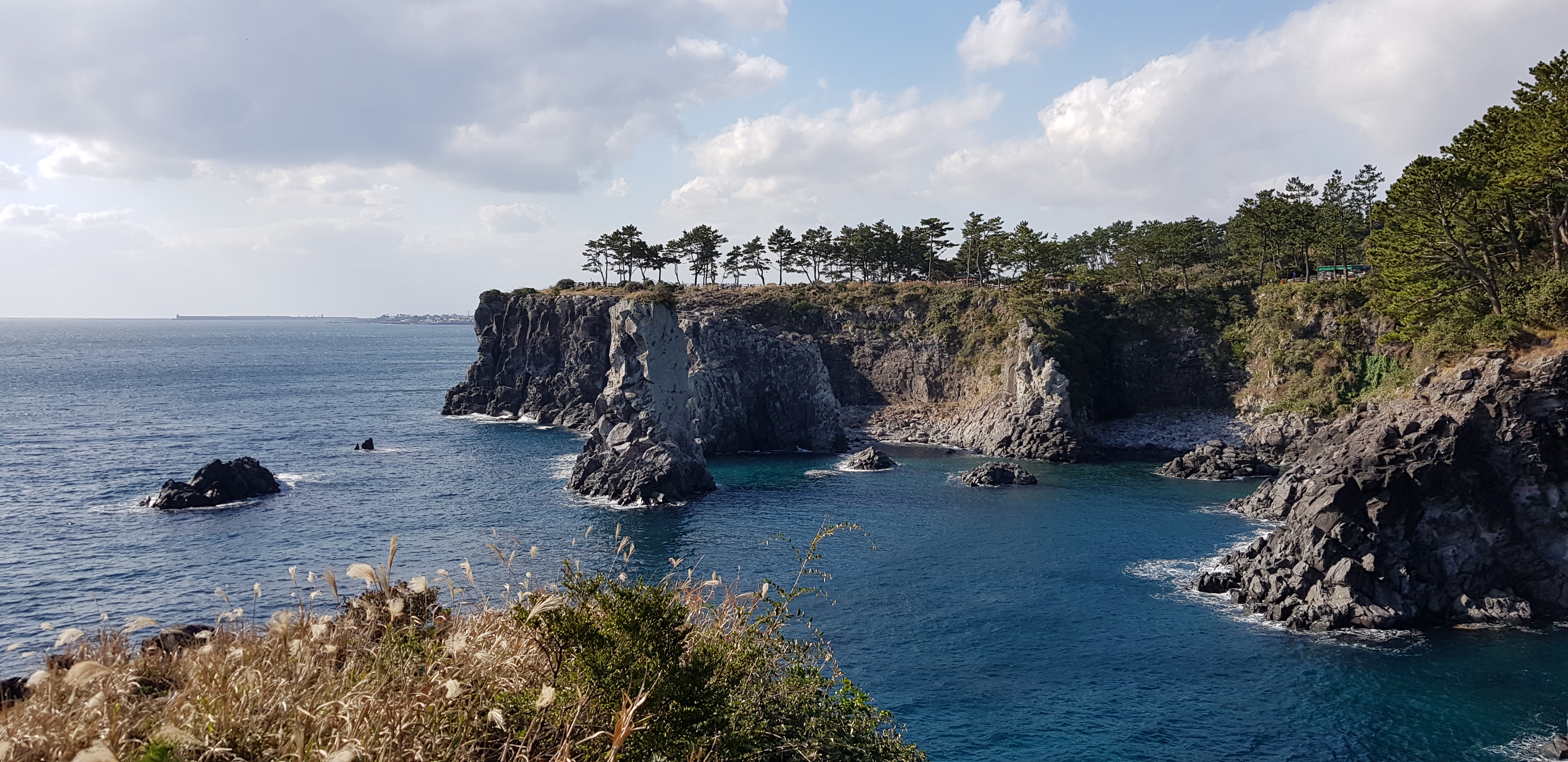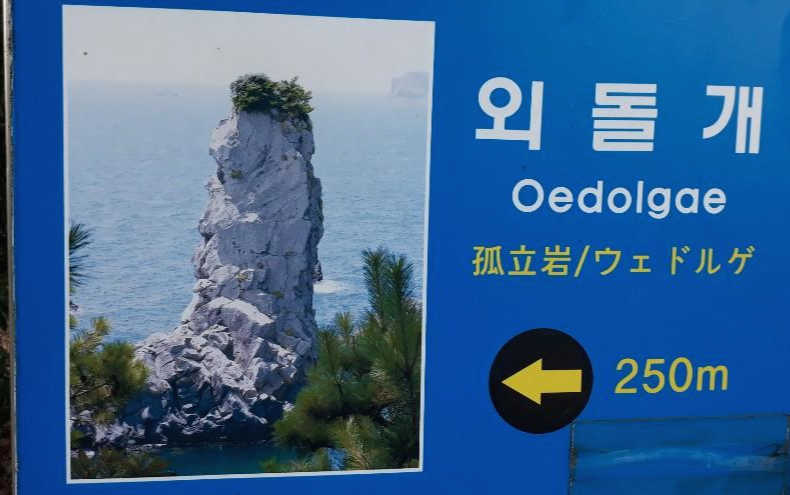 해안가에 외따로 솟아 있는 거대한 바위섬인 외돌개는 그 자체로 신비로운 분위기를 풍기고 있어요. 대장금 촬영지로 알려지면서 더욱 유명해졌다고 하네요. 150만년 전 화산 폭발로 섬의 모습이 바뀔 때 생긴 바위섬으로 꼭대기에 작은 소나무들이 몇그루 자생하고 있다고 해요. 오르기에는 너무 위험한 기암절벽의 형태이며, 보는 방향에 따라 모양이 다르게 보인다고 해요. 외돌개에서 멋지게 한 컷 사진을 남기고 노점에서 예쁘게 만들어진 돌하르방과 장식품을 샀어요.