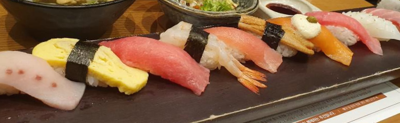 롤도 하나들어있고 장어, 연어, 오징어, 새우, 계란 등이 나왔는데 재료들이 신선해 맛있었습니다.
