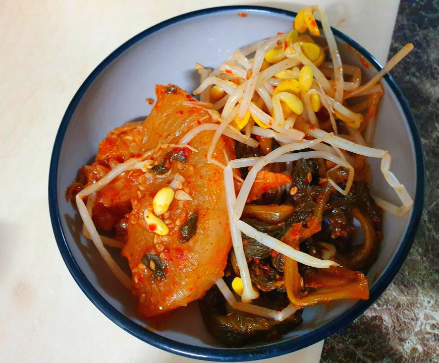 맛있게 졸여진 무우랑 시래기, 콩나물이랑 코다리도 그릇에 담았습니다. 전 무우를 좋아하는데 정말 맛있게 졸여져 맛있었어요. 기본적으로 알맞게 매콤한 맛에 시래기도 잘 졸여져 코다리랑 먹으니 정말 잘어울려 맛있더라구요.