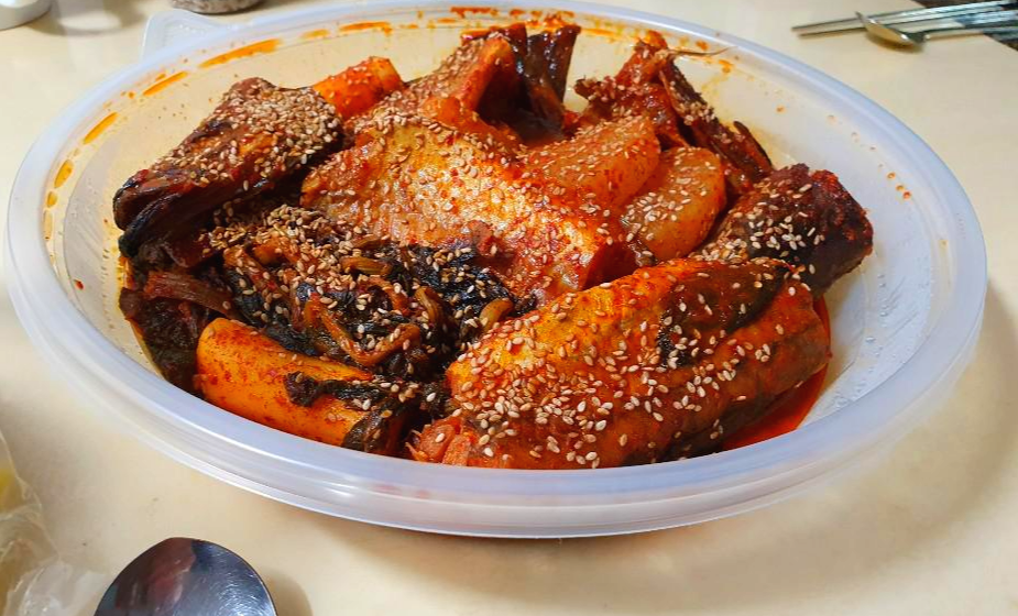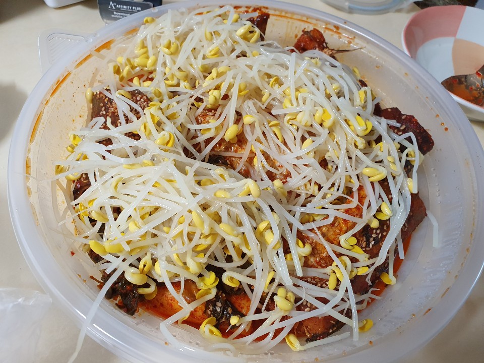 짜잔 드디어 퇴근하면서 코다리찜을 사왔습니다. 양이 소짜라 적을 줄 알았는데 그릇이 생각보다 큽니다.