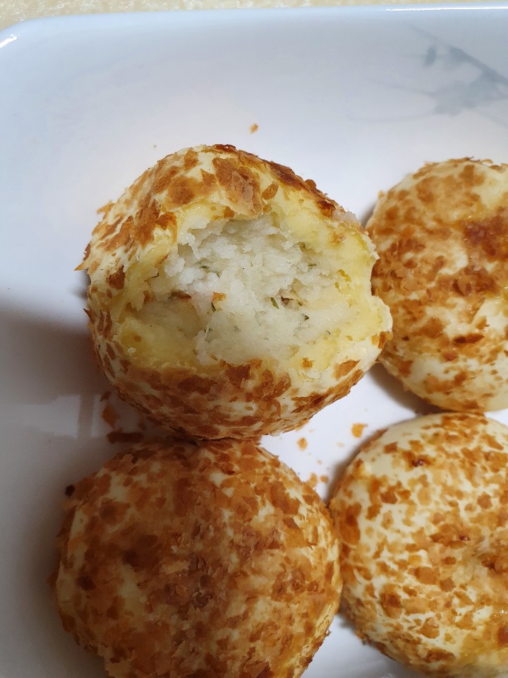 도톰한 모찌볼 12개가 들었고 치즈볼을 튀긴거라고 하기에 그냥 양념없이 하나 먹어봤습니다. 모찌볼안에는 아무것도 안들었고 그냥 찹쌀도넛입니다. 쫄깃한 식감이 정말 좋습니다.