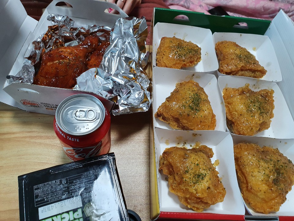 저번 배달때는 늦게와서 인지 치킨이 많이 식었던데 이번에는 직접가서 가져와서인지 뜨근뜨근해서 치킨의 본연의맛을 느낄수있어 좋았습니다.