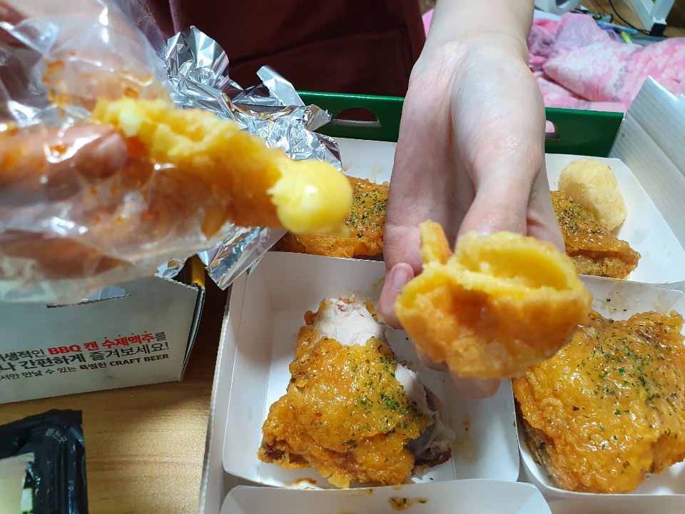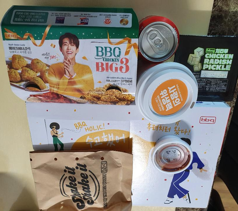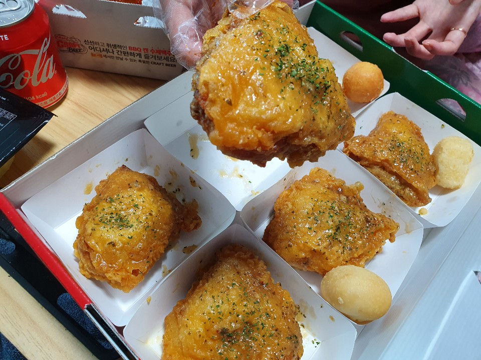 BBQ는 잘 이용하지 않았는데 광희의 활약으로 가끔 시키게 되는 것같아요. 아쉬운점이 있다면 양에 비해 치킨값이 비싸다는 것입니다. 조금만 저렴하면 좋겠어요.