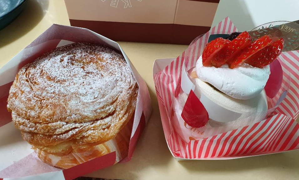 쉬폰 딸기 케이크(?)입니다. 딸기 철이라 딸기로 만든 빵들이 참 많더라구요. 가격은 6000원입니다.
