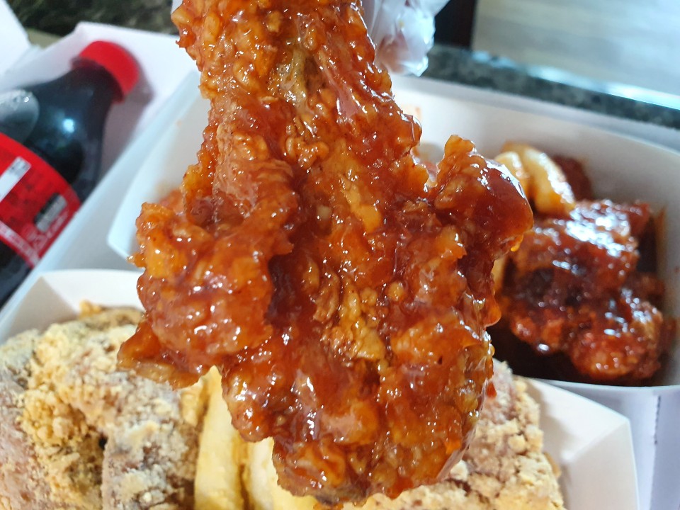 바삭한 치킨에 달콤한 양념이 듬뿍인 양염치킨 바삭하면서 달콤해 맛있었습니다.