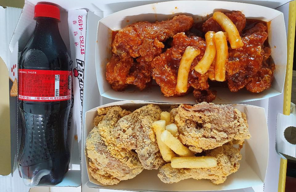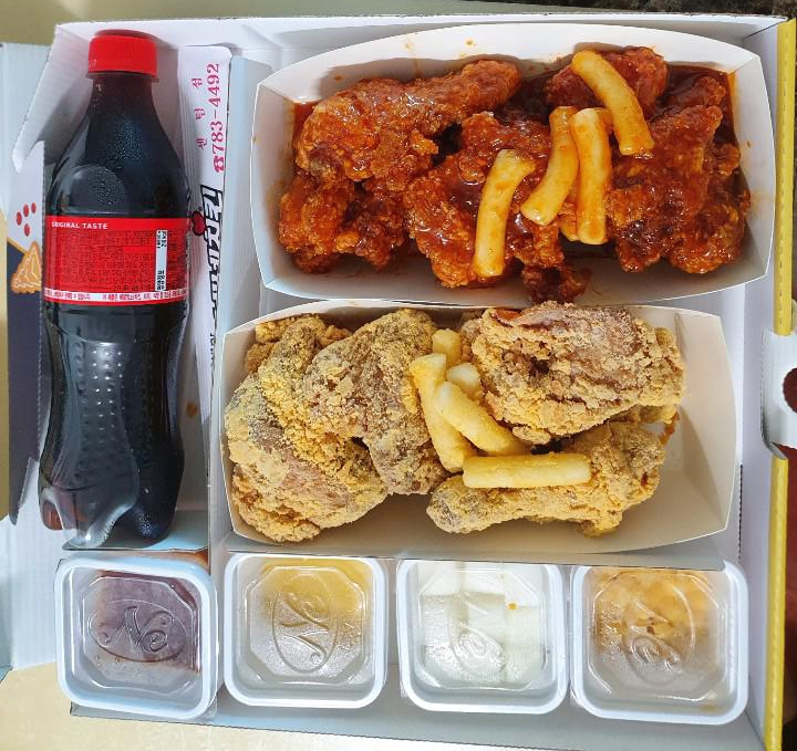 스노윙 치즈 치킨만 먹으면 느끼할 것 같아 같이 주문한 양념치킨입니다.