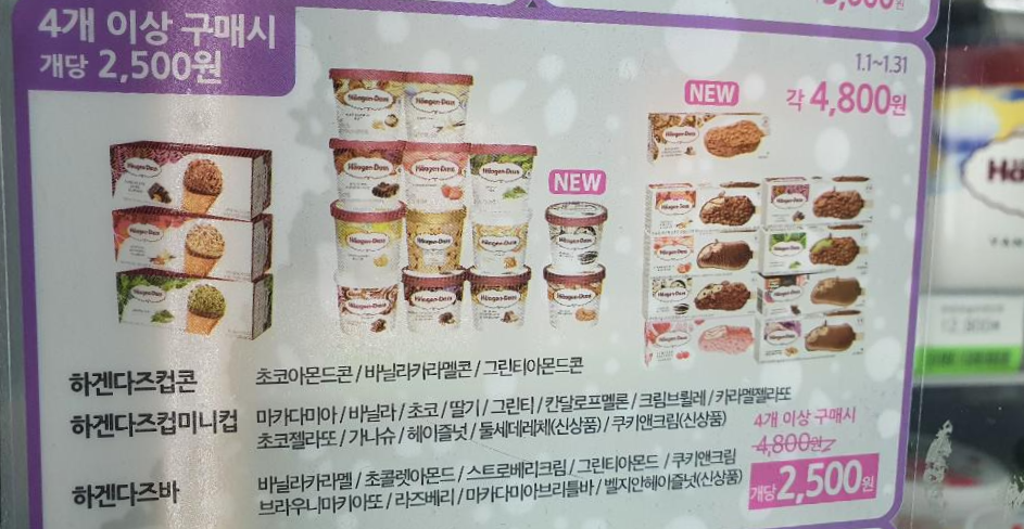 하겐다즈는 전국 편의점(GS, CU,세븐일레븐 등)에서 미니컵, 바, 콘 제품을 4개에 만원에 판다는 소식도 놀라운데 교차로 구매가 가능하다고 하니 이번 기회에 다양한 맛을 맛볼 수 있을 것 같아 기대됩니다.
