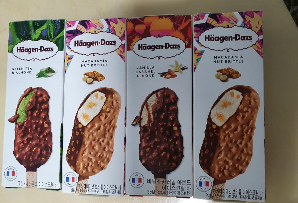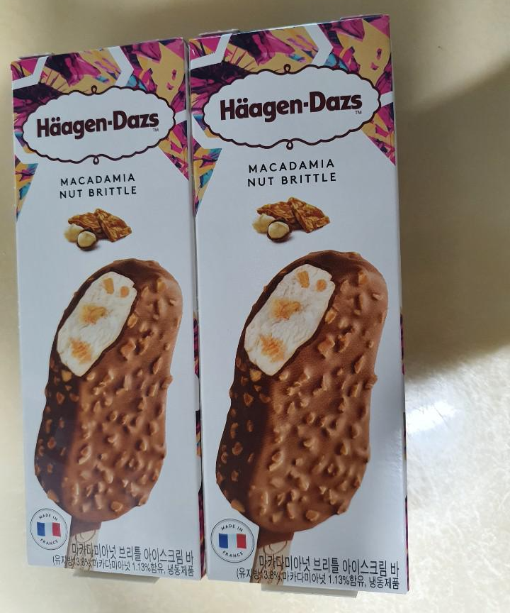 제가 먹어보고 싶었던 마카다미아넛 브리틀 아이스크림 바를 2개와 그린티&아몬드,바닐라캐러맬 아몬드 맛으로구매해왔습니다.