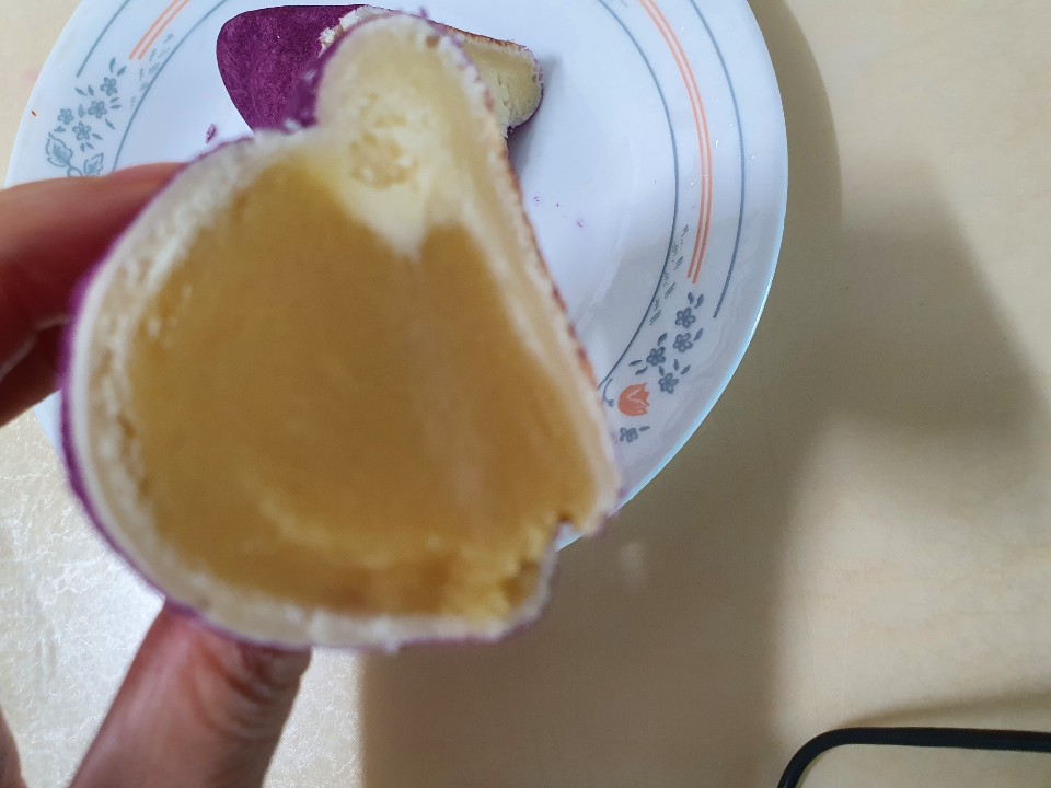아쉽다면 고구마 빵 겉표면에 있는 자색이 손에 묻어나는 것과 해남고구마빵이랑 비교했을때 쫀득한 식감이나 풍미가 덜한 것도 아쉬웠어요.
