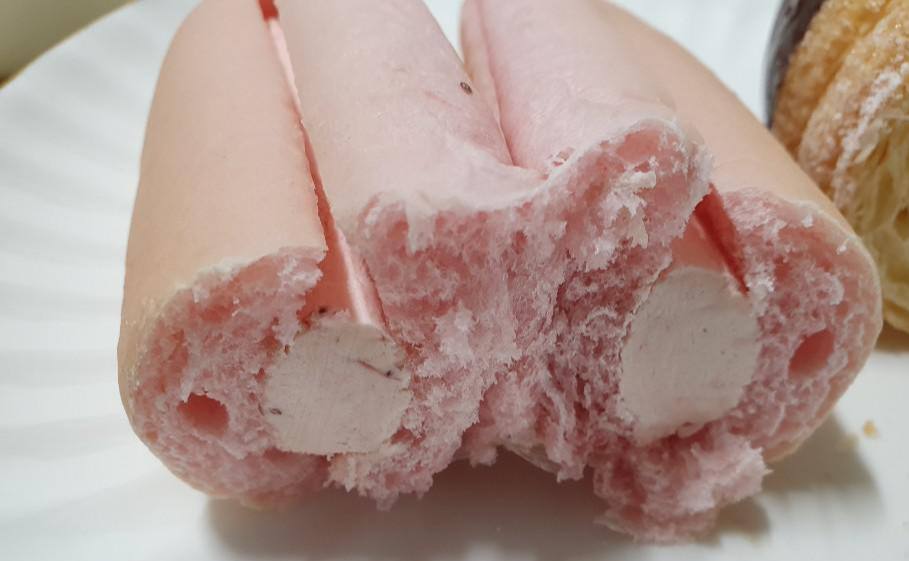 딸기 크림빵을 반으로 잘라보니 지점마다 다르겠지만 저희 지점은 크림이 듬뿍들어갔습니다.