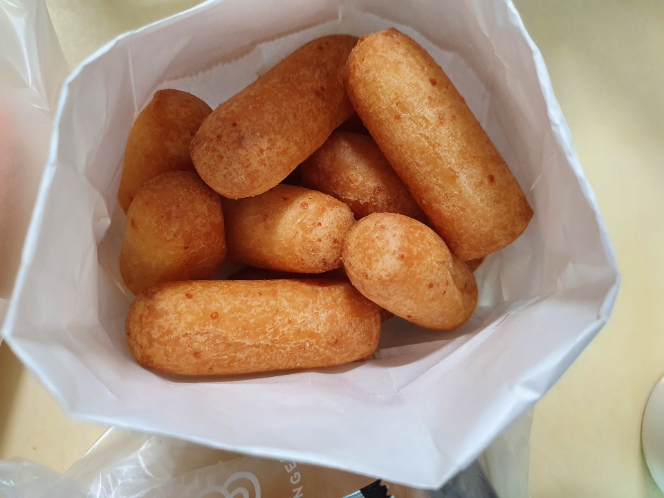 그냥 보이는데로 작아서 한입에 쏙 들어갈 수 있는 쫄깃한 찹쌀 도넛입니다,