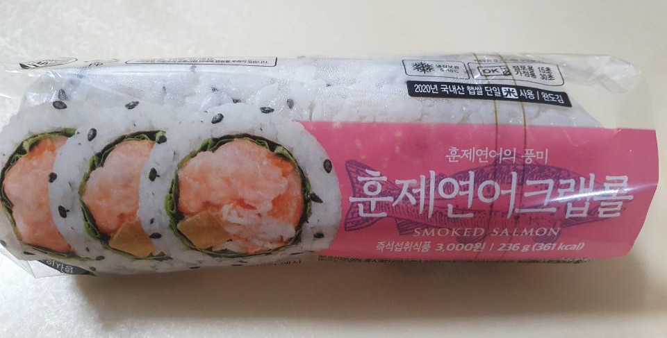 훈제연어크랩롤은 편의점 김밥 중에서도 퀄리티가 정말 좋은 것 같아요.