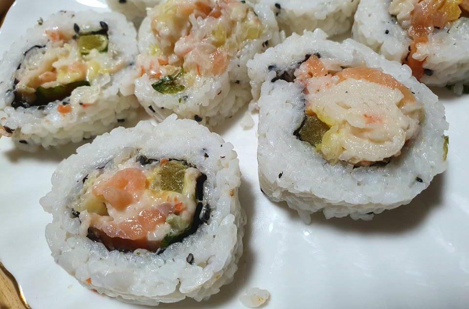 유뷰초밥에 크래미가 듬뿍올라간것 보이시죠.