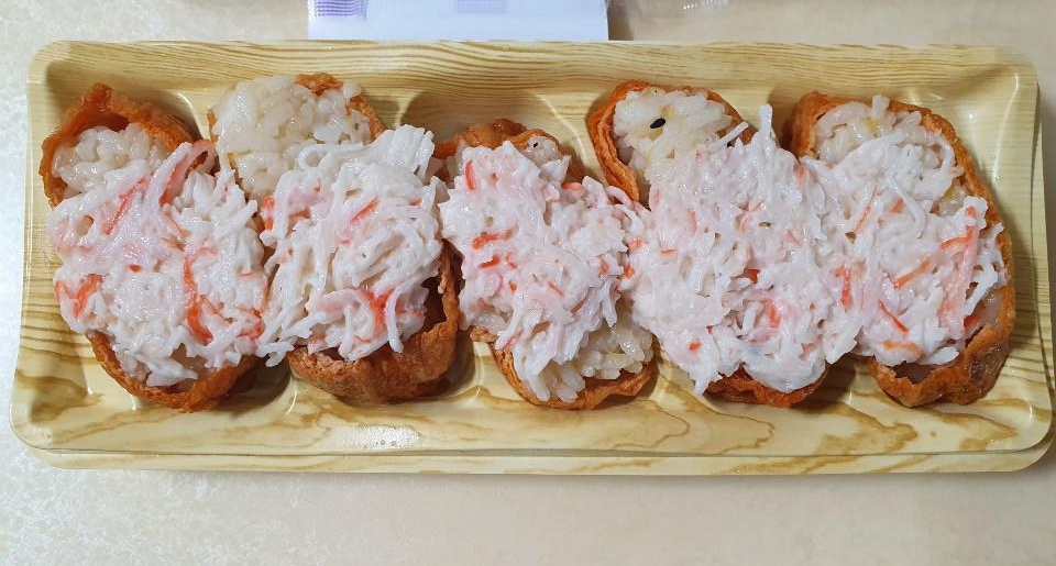 먹어보니 유부초밥이 간도 잘되어져 있는 것 같고 크래미랑 마요네즈가 잘 섞여 식감도 괜찮았어요.