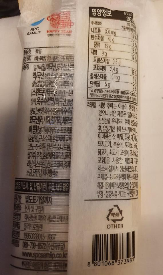 삼립 잘익은 옥수수 이야기는 총내용량은 110g에 193kcal입니다. 가격은 1600원