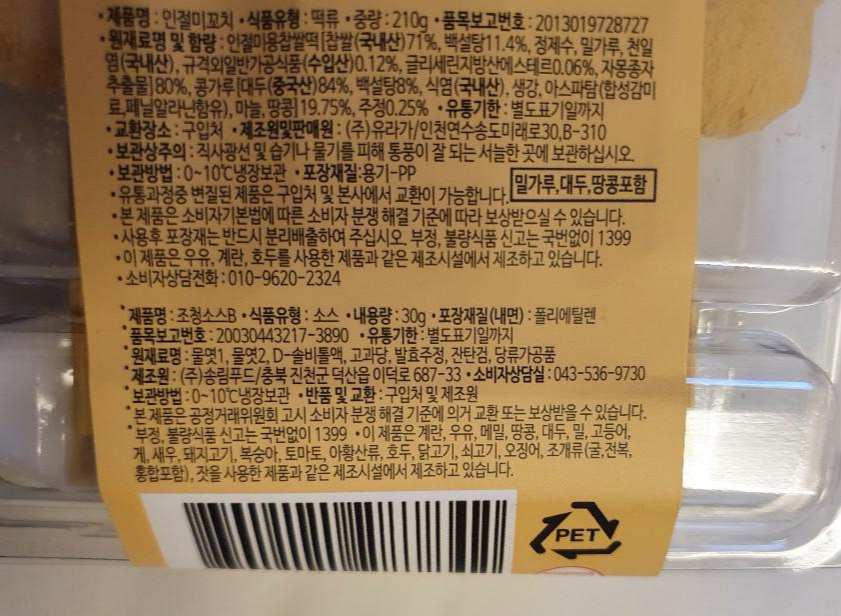 드실때 냉장보관 했다 드시면 쫀득함이 더 좋을 것 같아요.