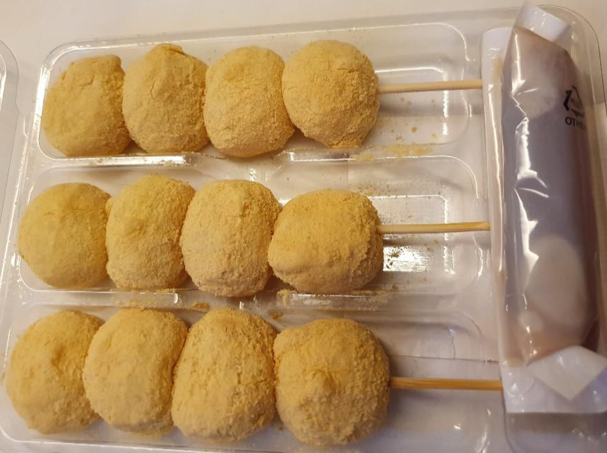 모양 하나하나를 보면 경단같이 생겼는데 꽂아 꼬치로 만들어 먹기좋게 만들었습니다