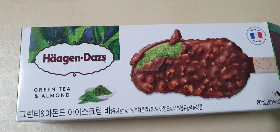 하겐다즈 아이스크림과 고소한 아몬드 초콜릿 코팅의 조화, 진한 녹차와 달콤한 초콜릿 코팅이 어울릴지