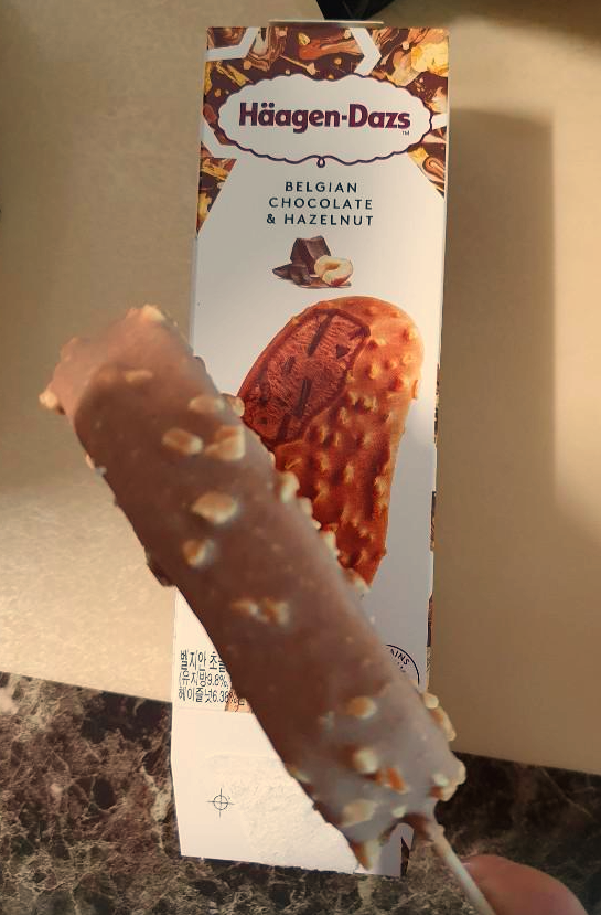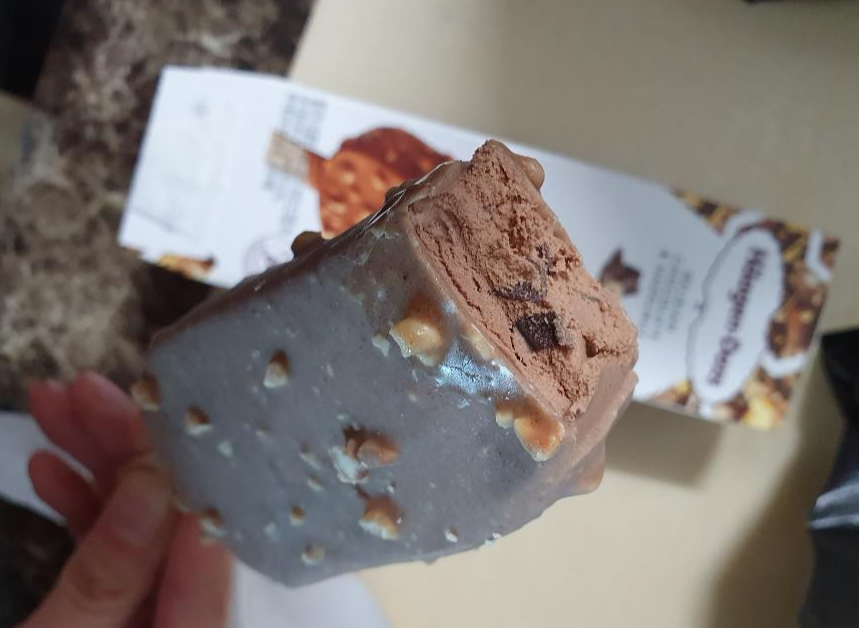 초콜릿 코팅도 두껍고 위에 헤이즐넛이 콕콕 박혀있어요. 완전 초코초코하죠 ㅎㅎ 초콜렛을 좋아하는 저로써는 정말 기대가 되는 아이스크림이였어요.