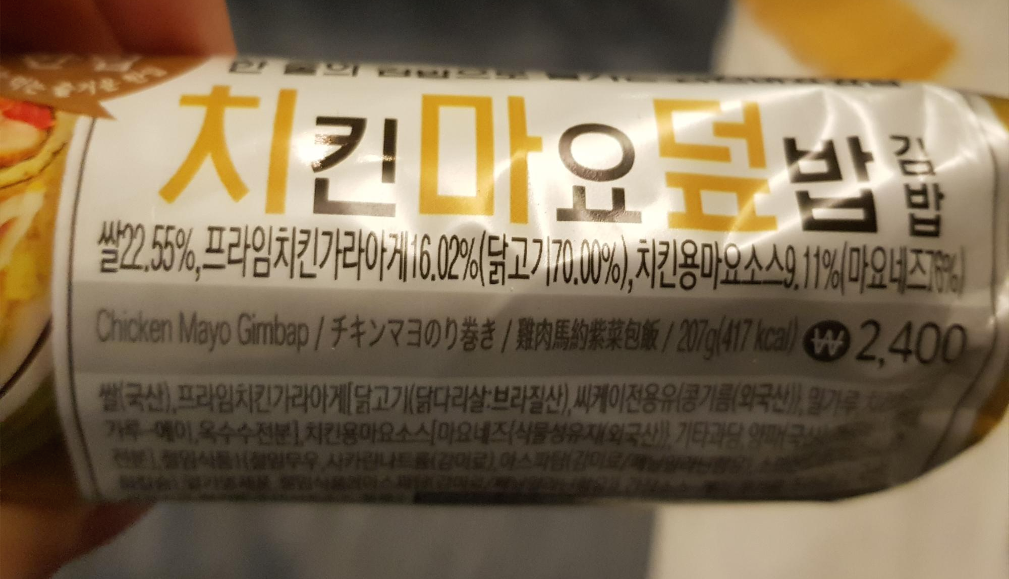 치킨마요덮밥에는 쌀 22.55%, 프라임치킨가라아게16.02%, 치킨용 마요소스11%가 들었다고 합니다.