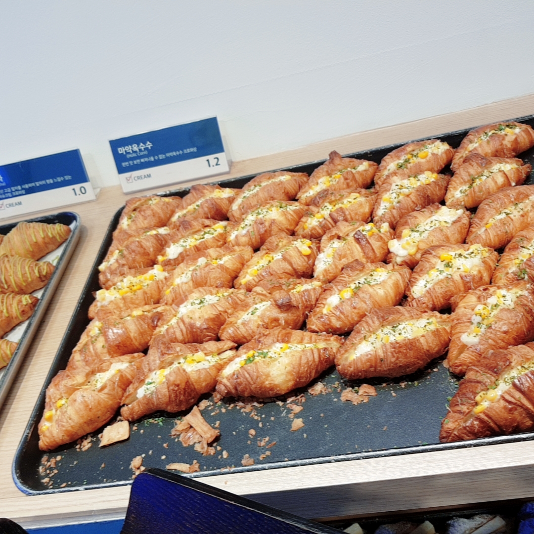 마약옥수수 크로와상은 한번 맛보면 빠져나올수 없다는 마약 옥수수빵에 크로와상이 만나니 바삭바삭하고 옥수수 알갱이가 씹히는 맛이 고소면서 달콤한 맛이 나는게 다음에 또 사먹고 싶어지는 맛입니다.
