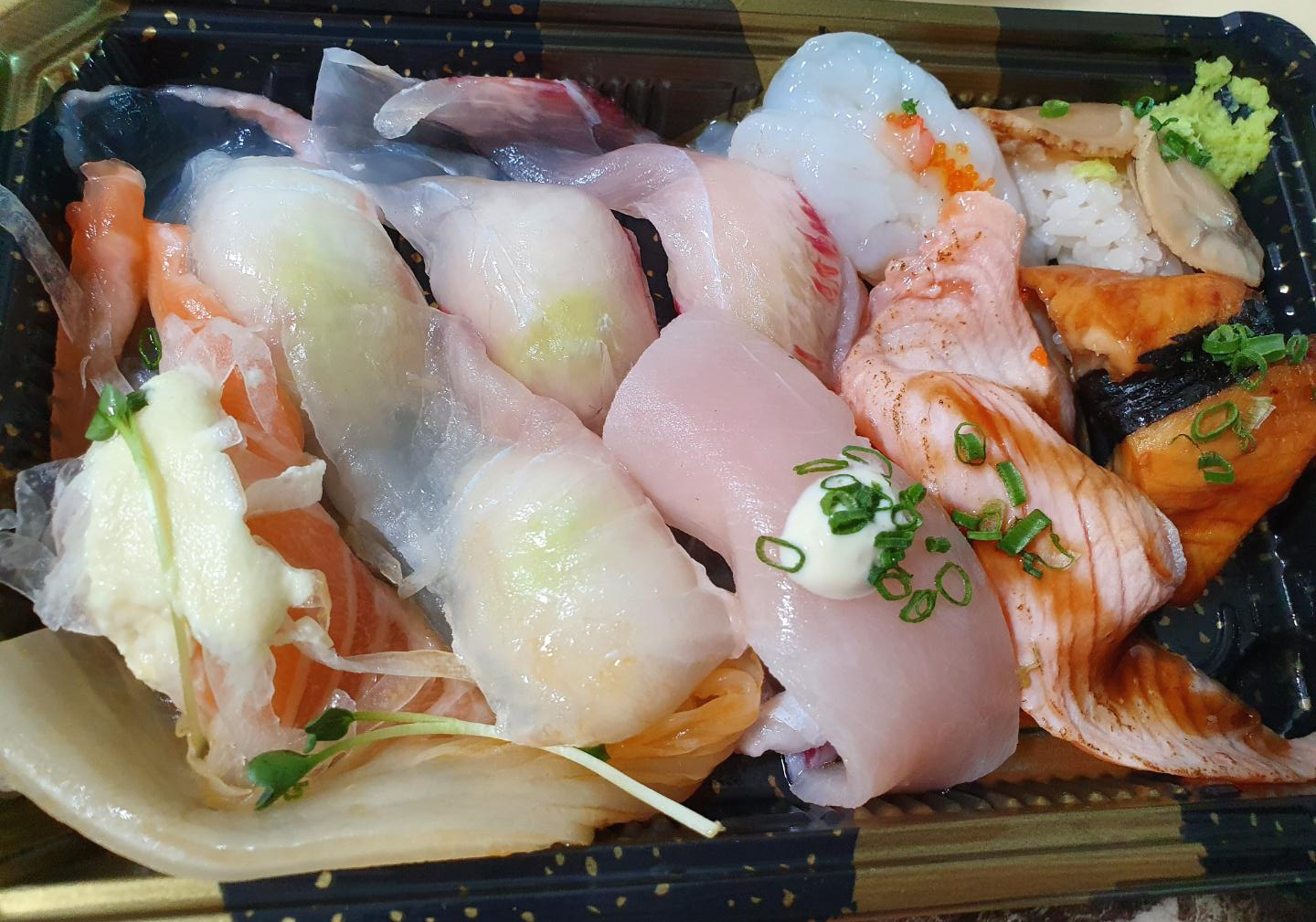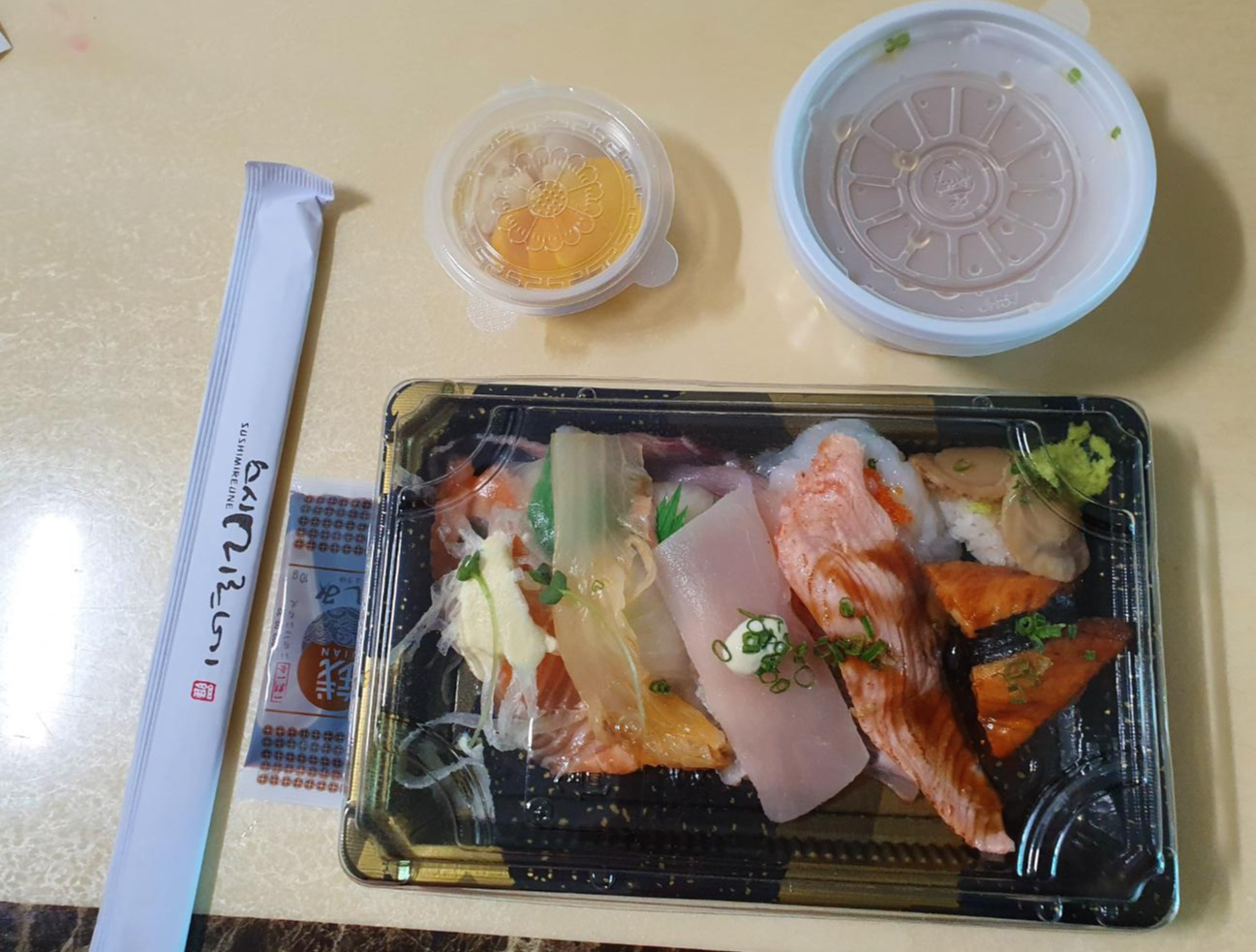 포장해온 초밥을 열었더니 초밥위에 올려진 회들이 정말 큼지막 하다는 생각이 듭니다.