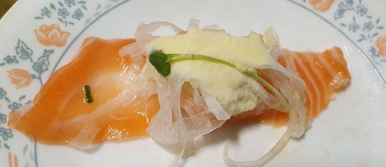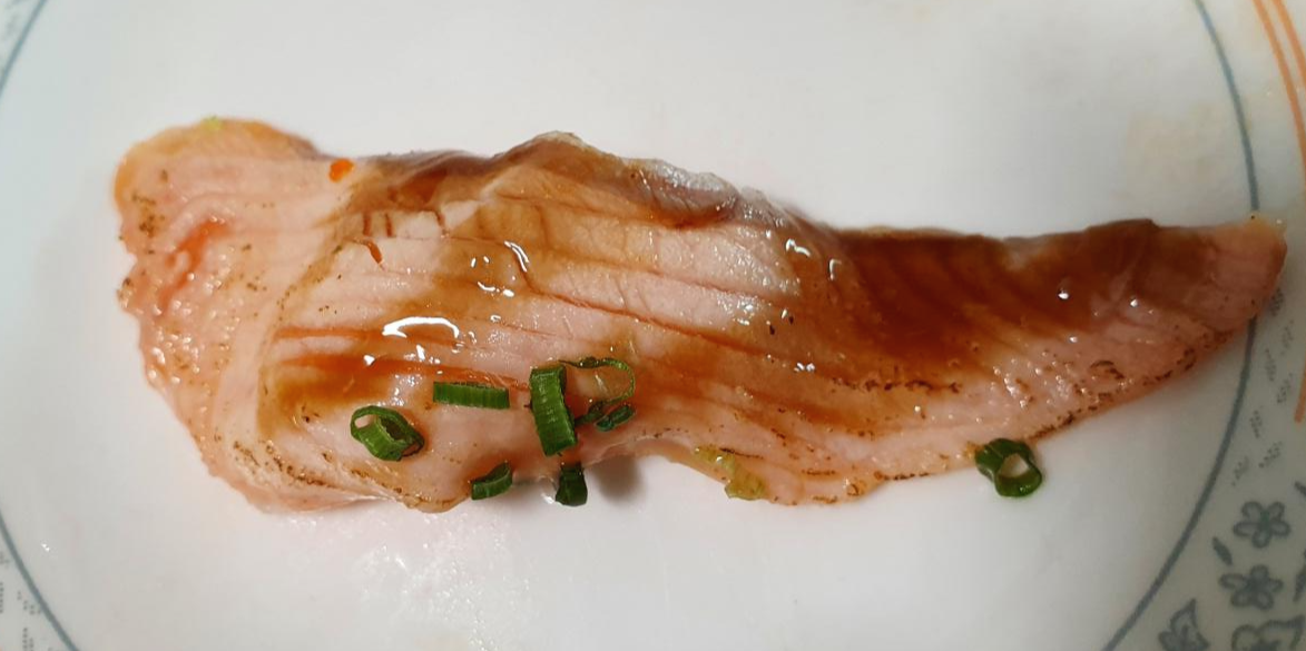 겉에는 은은한 불향이 베어있으면서 싱싱함이 그대로인데 소스랑 어우러져 또 다른 연어의 초밥의 맛을
