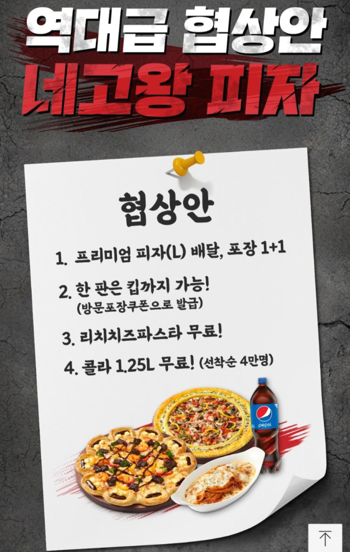 리치치즈파스타(10만개)와 콜라 1.25L(4만개) 선착순입니다.