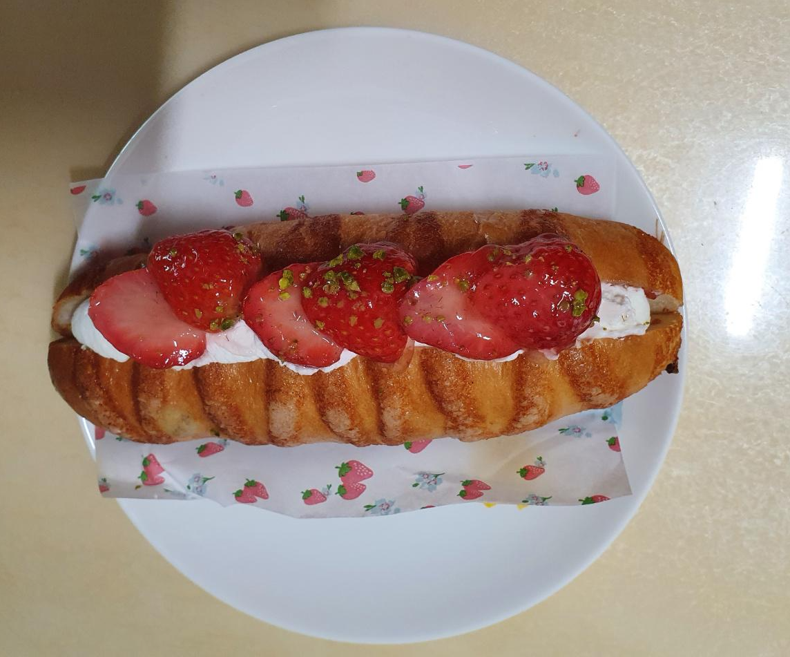한입 먹어보니 생크림의 달달함과 패스트리 빵의 바삭함과 고소함이 딸기와 잘 어우러져 정말 맛있었어요.