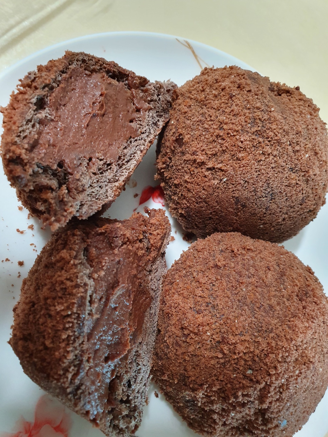 겉부분이 초코가루로 묻혀져 있는데 부드러운 초코가루가 아니라 먹을때 받치고 먹어야겠어요.