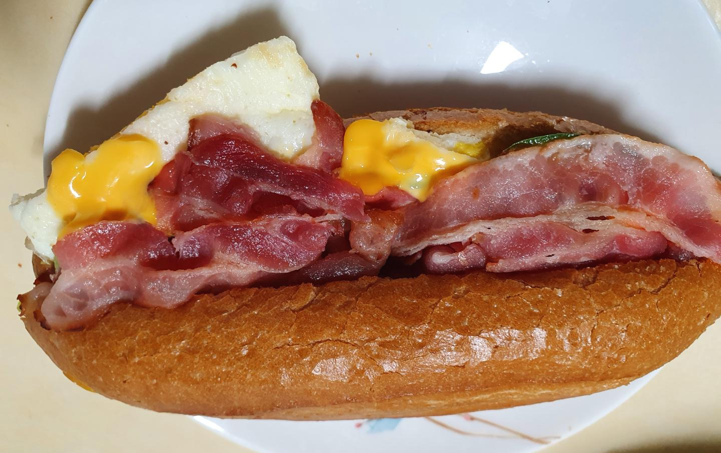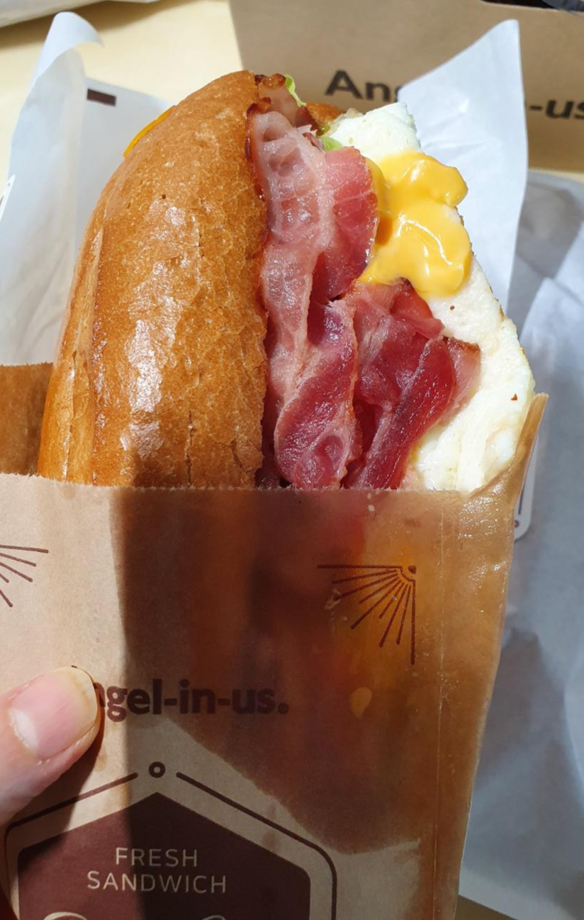 바삭한 베이컨과 고소한 체다치즈, 계란패티, 토마토, 야채 등 속 내용물이 풍성하게 들었습니다.