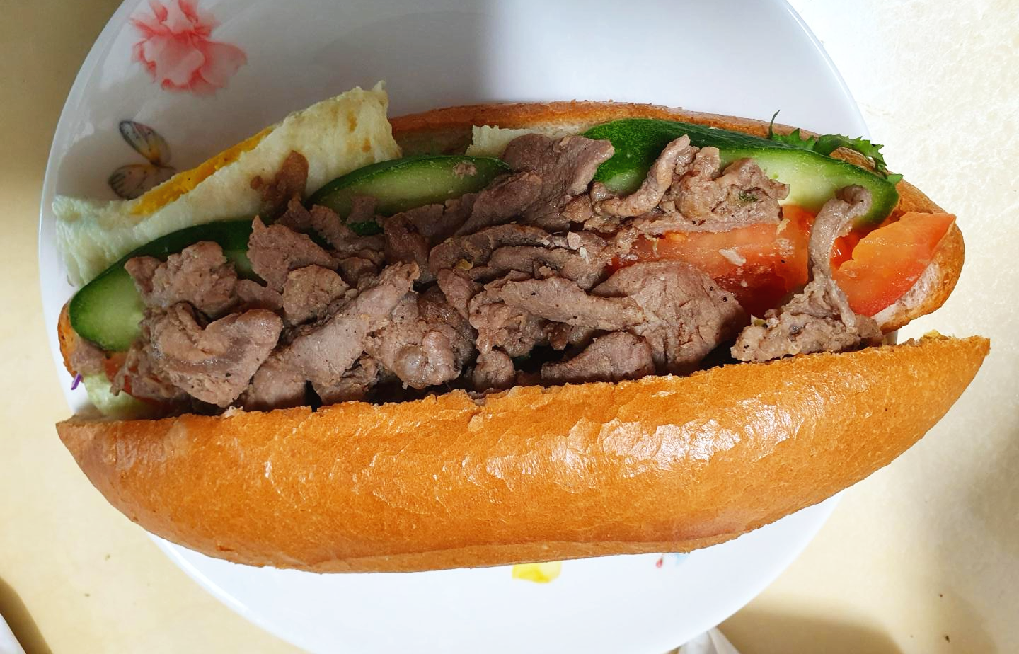 오리지널 불고기 반미 샌드위치를 보는 순간 정말 큼직하고 오이, 계란, 토마토, 불고기 등 속이 알차게 들어 있어 놀랐어요. 이것 하나만 먹어도 배가 든든할 것 같네요.