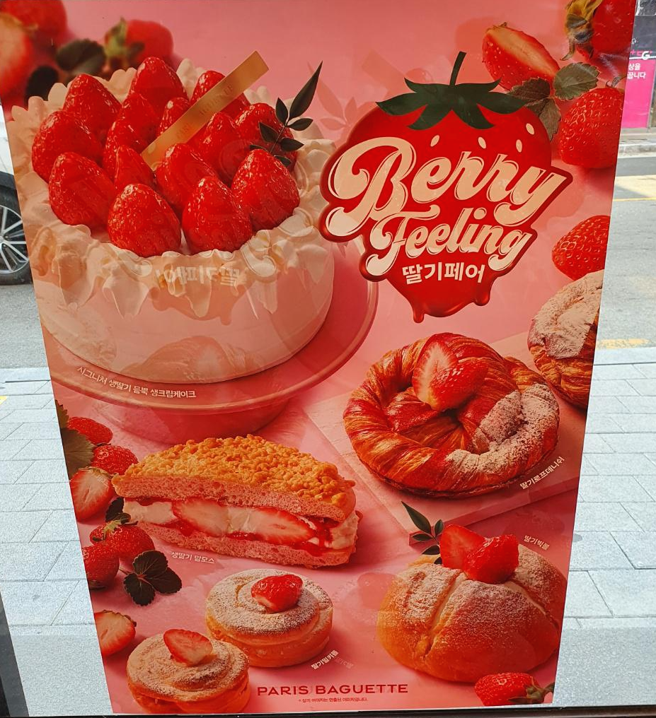파리바게트 2021년 딸기페어에는 시그니처 생딸기 듬뿍 생크림 케이크와 딸기빅볼, 생딸기 맘모스, 딸기 밀키볼, 딸기 크림빵, 생딸기 요거트 샌드, 딸기 로프 데니쉬, 딸기요거트 파이 등 정말 먹음직스럽기도 하고 비주얼이 이쁘기도 합니다.