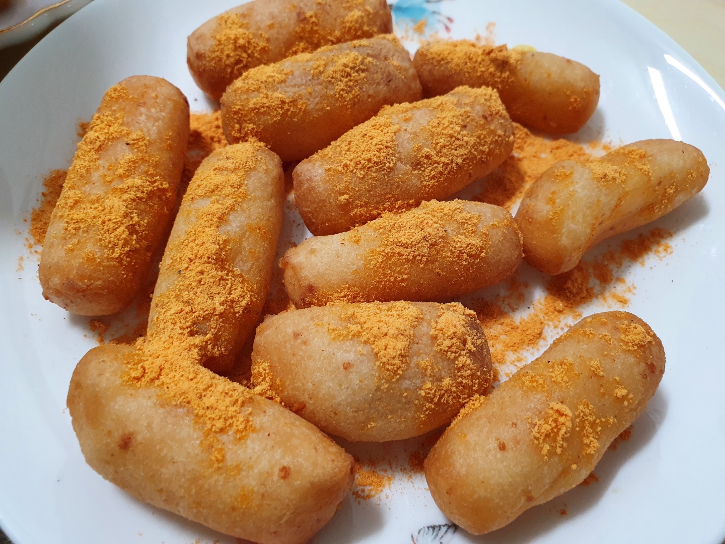 쉑쉑모찌볼을 에어프라이기에 5분정도 돌려 더 박삭하게 해서 떡볶이맛 시즈닝을 뿌려졌어요.